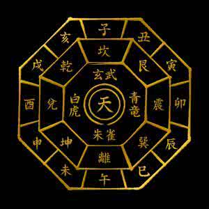 九宮:一宮坎(北)、二宮坤(西南)、三宮震(東)、四宮巽(東南)、五宮中(寄于坤)、六宮乾(西北